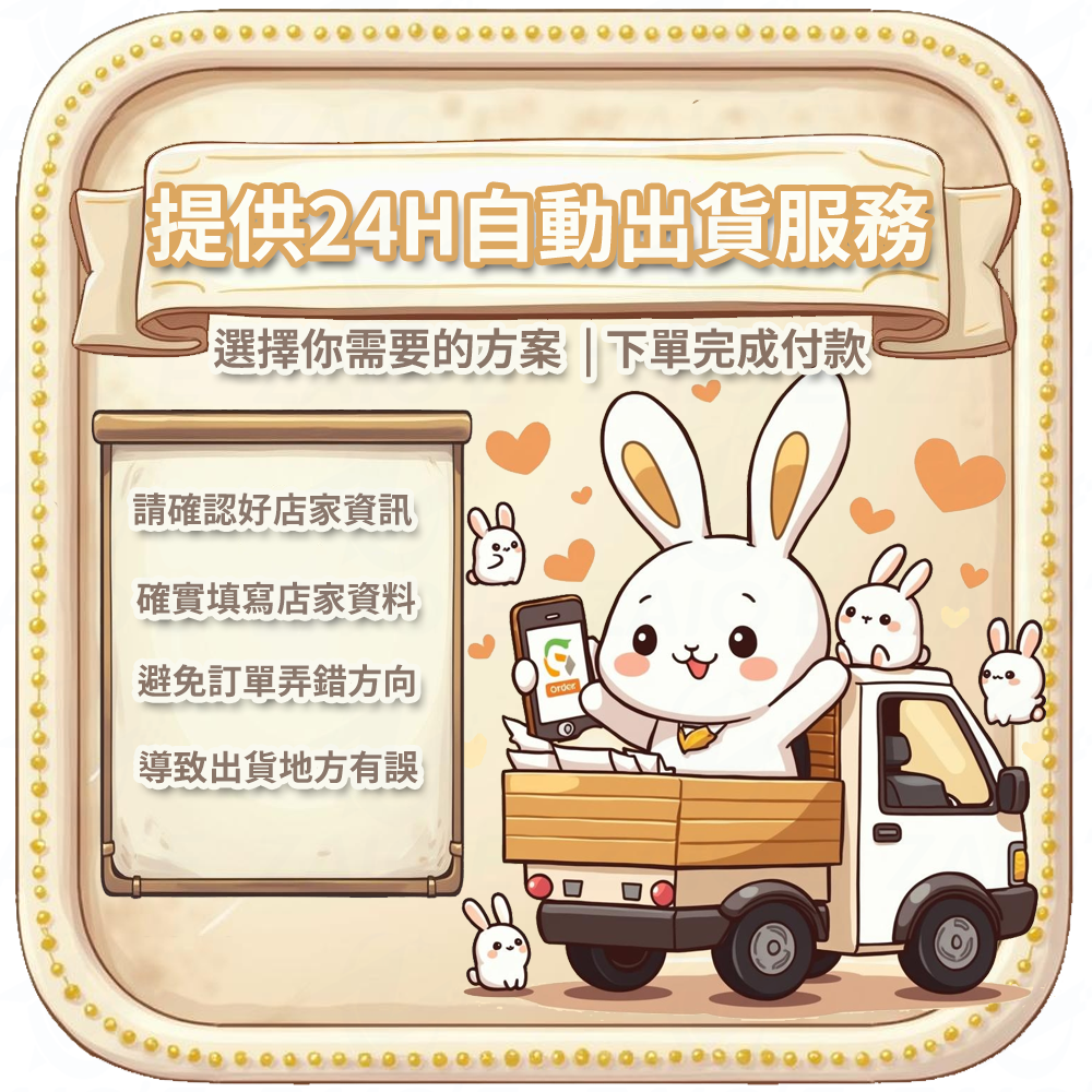本店提供 24 小時自助結帳服務,歡迎隨時選購,下單時請務必正確填寫 規格、資訊 與 網址 等資訊,完成付款後,系統將依您購買的方案,聯繫對應的廠商、單位、工讀生協助出貨。